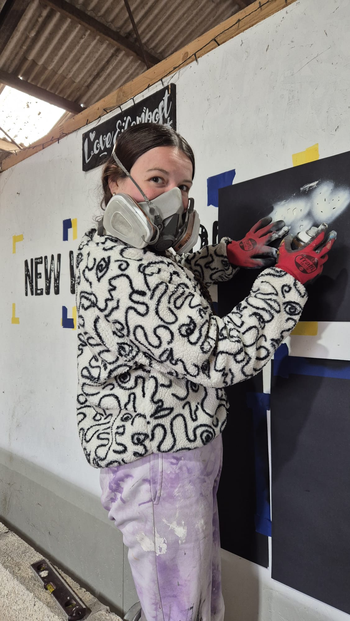 Eagle-eyed readers may have spotted some fresh artwork in the picture of our workshop above. Our artist and signwriting partner Verna Poppy was back in the Worm HQ recently to deliver a lovely new menu board for our touring workshops and to get our New Worm Order badge up on the wall in large scale. Here she is in action - another brilliant job from the master, thank you Verna!